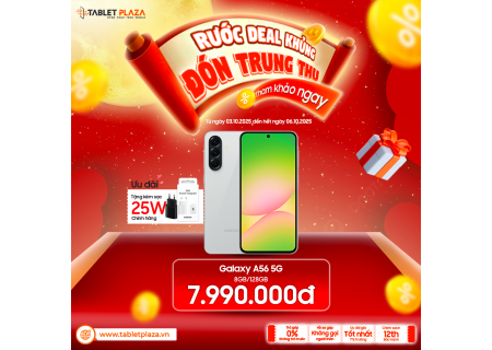 - Galaxy A56: Trang bị pin 5.000mAh, sạc nhanh 25W. Máy dễ dàng trụ 1 – 1,5 ngày với nhu cầu dùng trung bình.