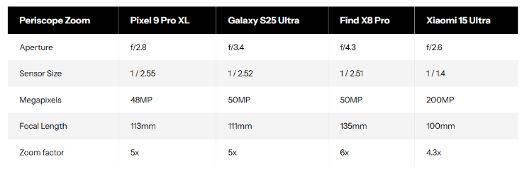 Các chuyên gia công nghệ đã lấy Pixel 9 Pro, Galaxy S25 Ultra, OPPO Find X8 Pro và Xiaomi 15 Ultra để so sánh điểm khác biệt về khả năng zoom.