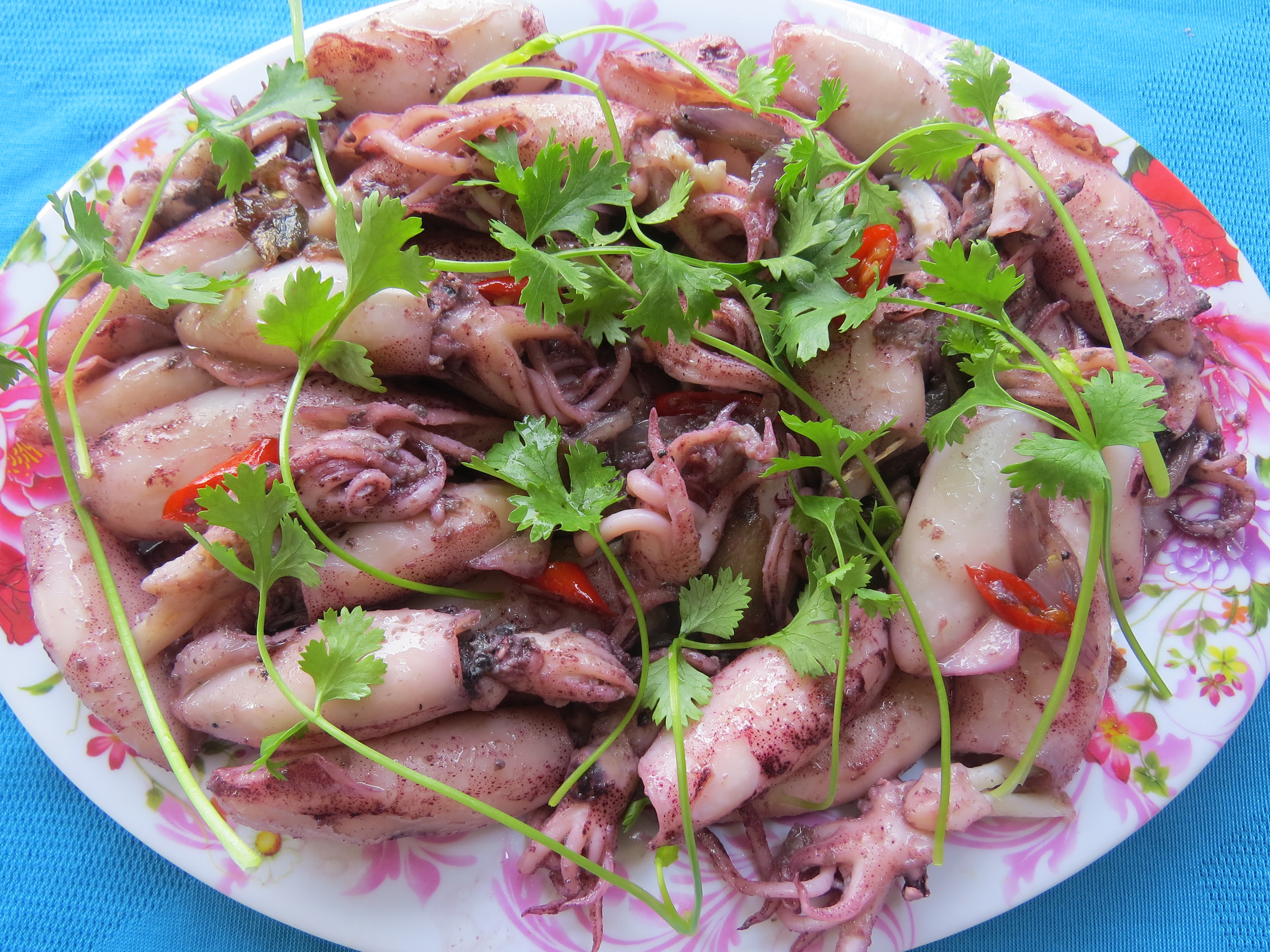 Món ăn đơn giản là thế, nhưng chỉ một miếng mực thôi cũng đủ gợi nhớ về cả một vùng biển bao la. Mực giòn sần sật, ngọt lịm, quyện cùng vị cay nồng của tiêu và ớt, hương thơm dịu dàng của ngò rí lan tỏa.