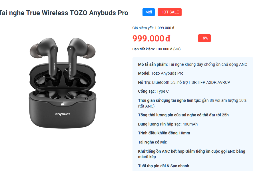 - Với công nghệ Bluetooth 5.3 mới nhất. TOZO Anybuds Pro có chất lượng âm thanh vượt trội, độ tin cậy kết nối, tiết kiệm năng lượng và trải nghiệm người dùng